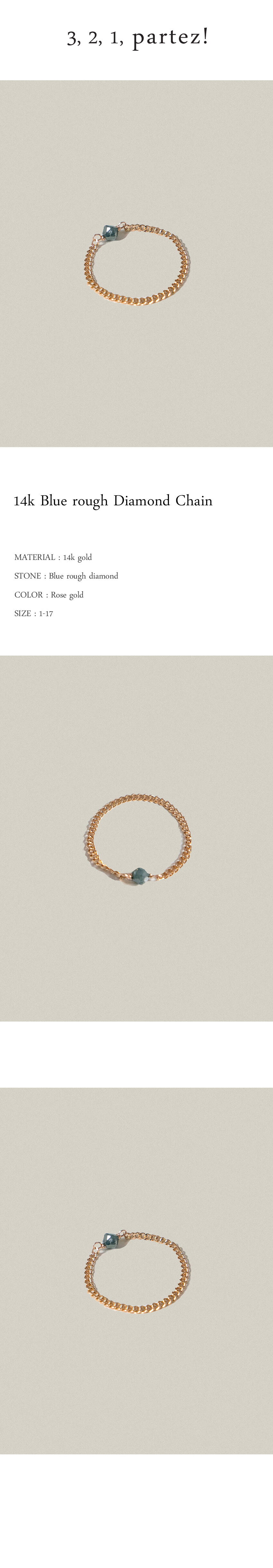 얇고 촘촘한 14k 체인에 블루러프다이아몬드가 연결되어있는 체인반지 입니다.