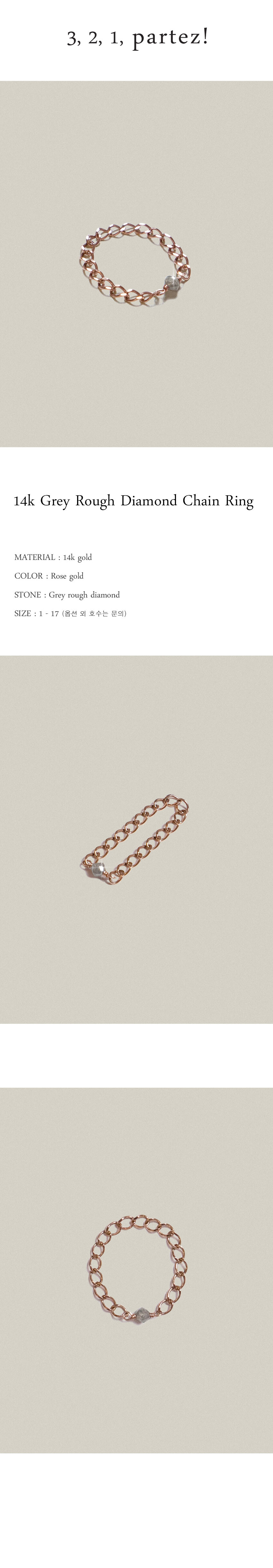 14k 고리체인에 그레이 러프다이아몬드 보석이 연결된 링입니다.