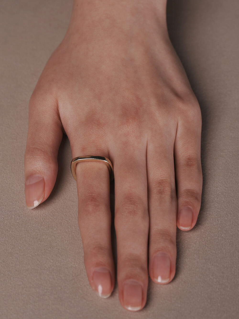 둥글린 사각형 모양의 유니크한 디자인의 링입니다.