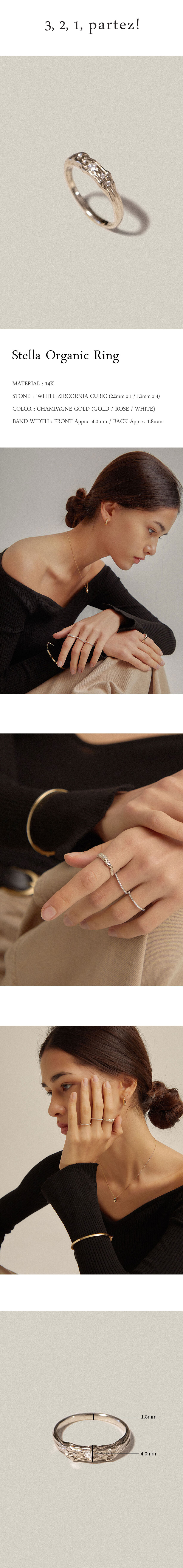 러프하고 자연스러운 곡선으로 이루어진 링에 5개의 크고작은 화이트 지르코니아가 정교하게 세팅되어있습니다.