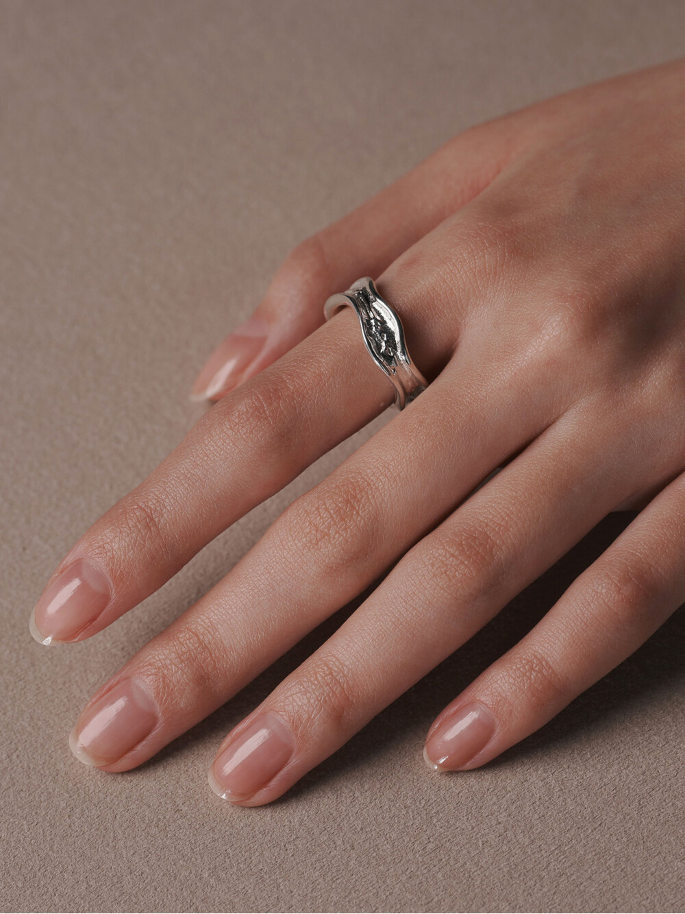 흐르는 물결과 같은 느낌으로 디자인된 실버링입니다.