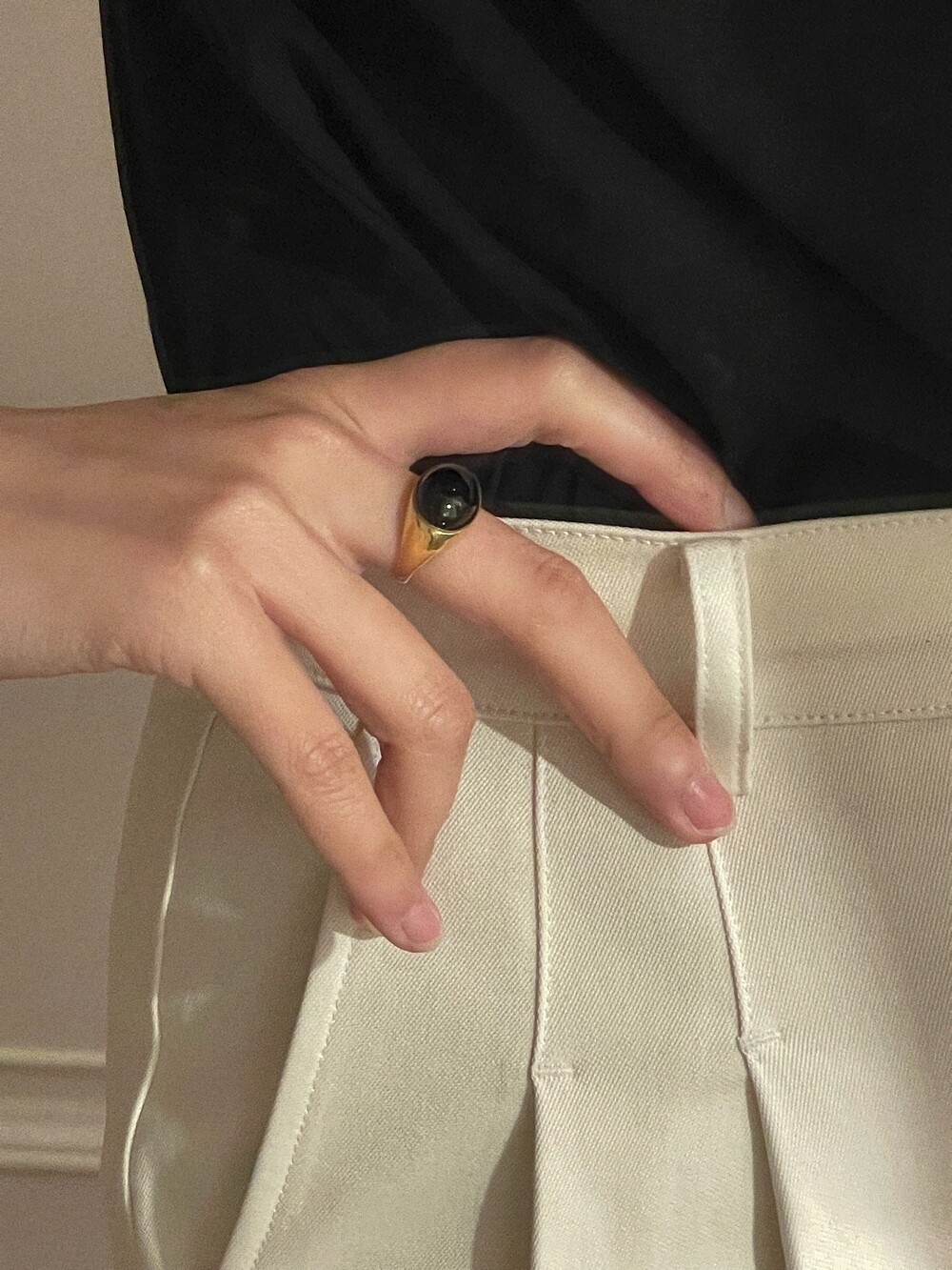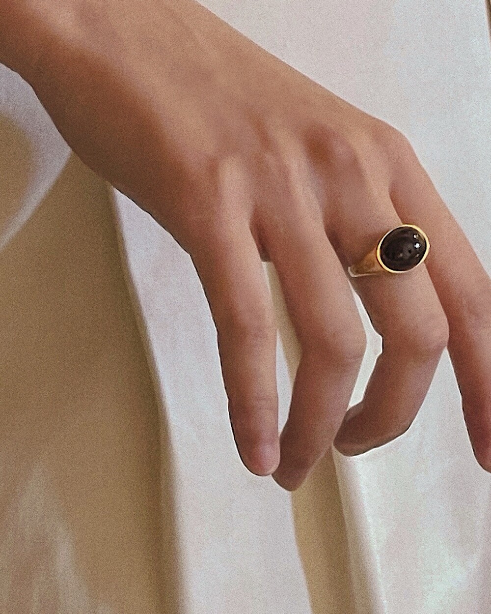 오닉스는 자신감을 높여주며, 잡념과 부정적인 기운을 떨쳐준다는 의미를 갖고 있습니다. 실버소재 위에 18k 골드 도금이 되어있어 깊이감이 더해지며 더욱 세련된 느낌을 줍니다.