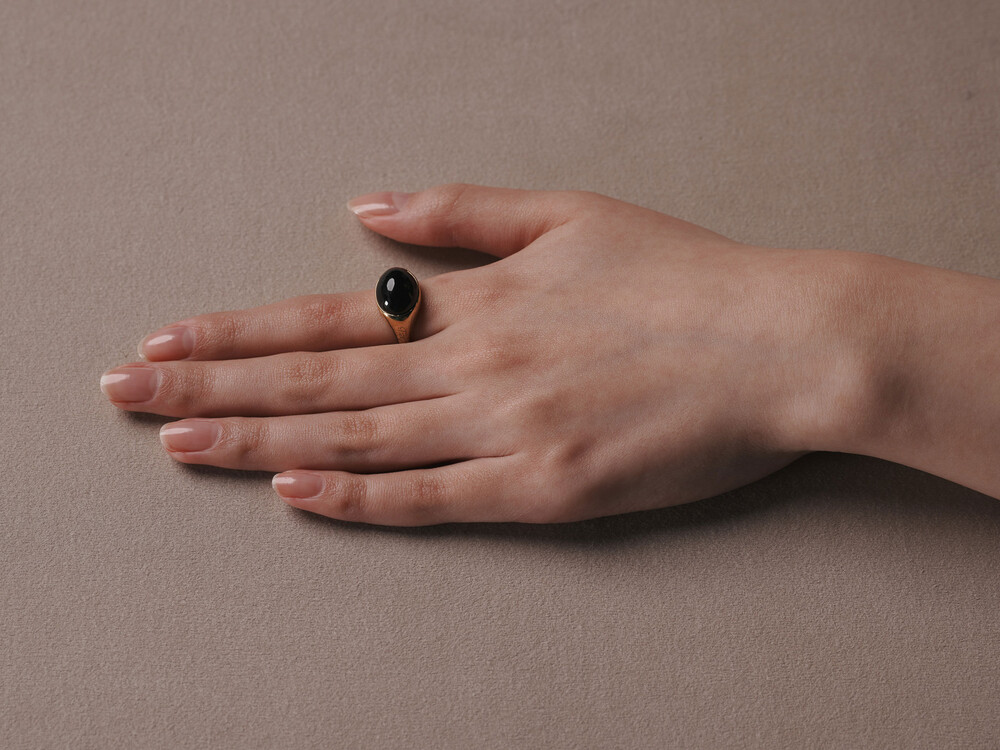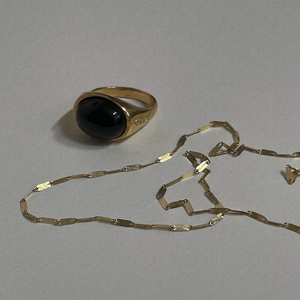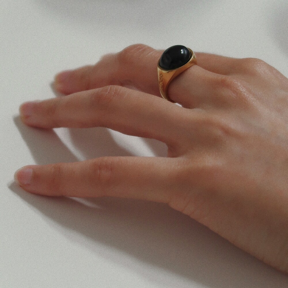 블랙의 깊은 컬러가 매력적인 오닉스 원석이 세팅되어있습니다.