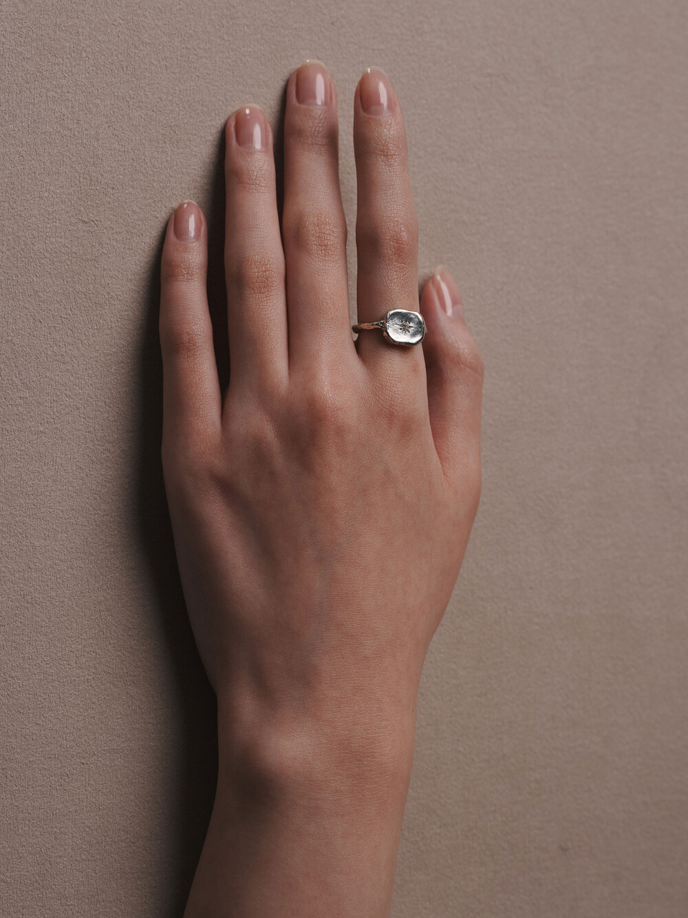 화이트 스톤이 핸드카빙으로 세팅된 반지.