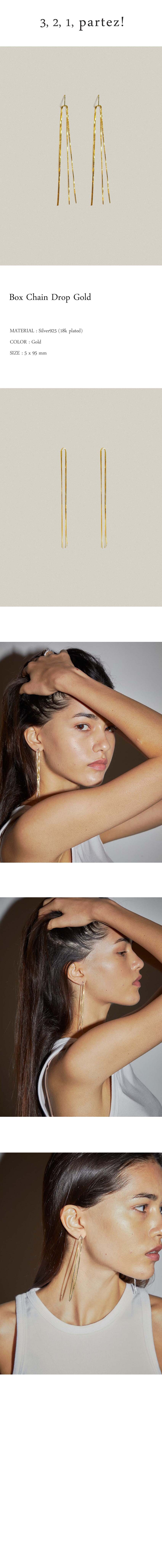 길게 늘어진 박스체인이 빛을 받음에 따라 반짝이는 드롭스타일의 이어링 입니다.
