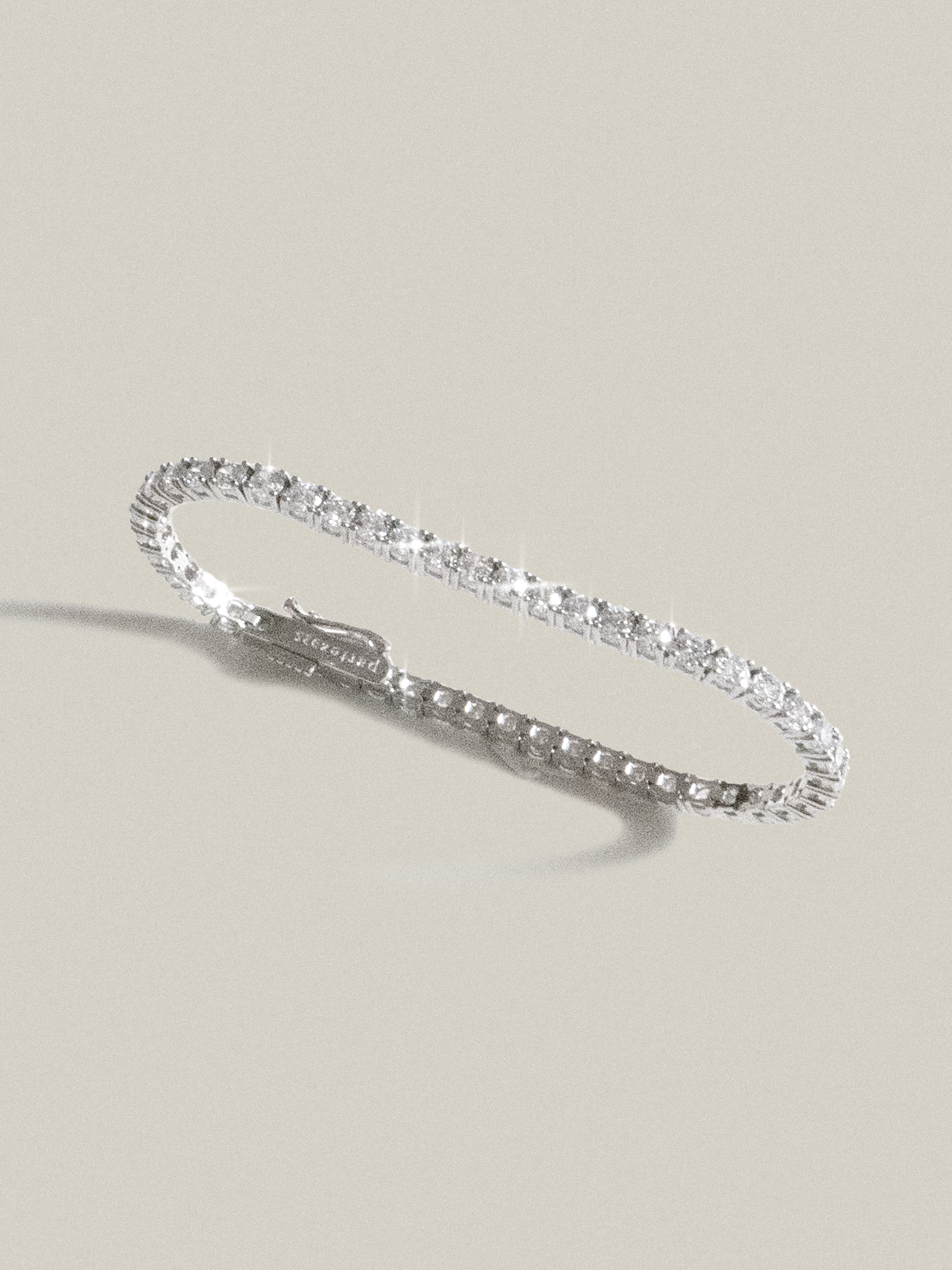 빛나는 브릴리언트 커팅으로, 다이아몬드와 같은 광채를 가진 3mm 원형의 시뮬럿다이아몬드가 정교하고 고급스럽게 세팅된 테니스체인 브레이슬릿입니다.