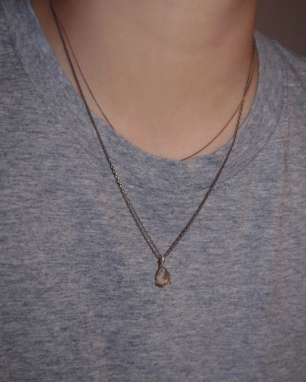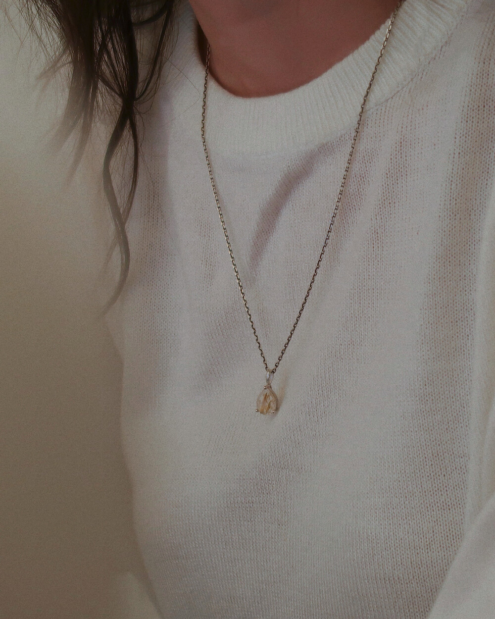 긍정적인 에너지와 행운을 가져다준다는 의미를 가진 골드침수정이 Pear cut으로 세팅된 팬던트의 네크리스 입니다.