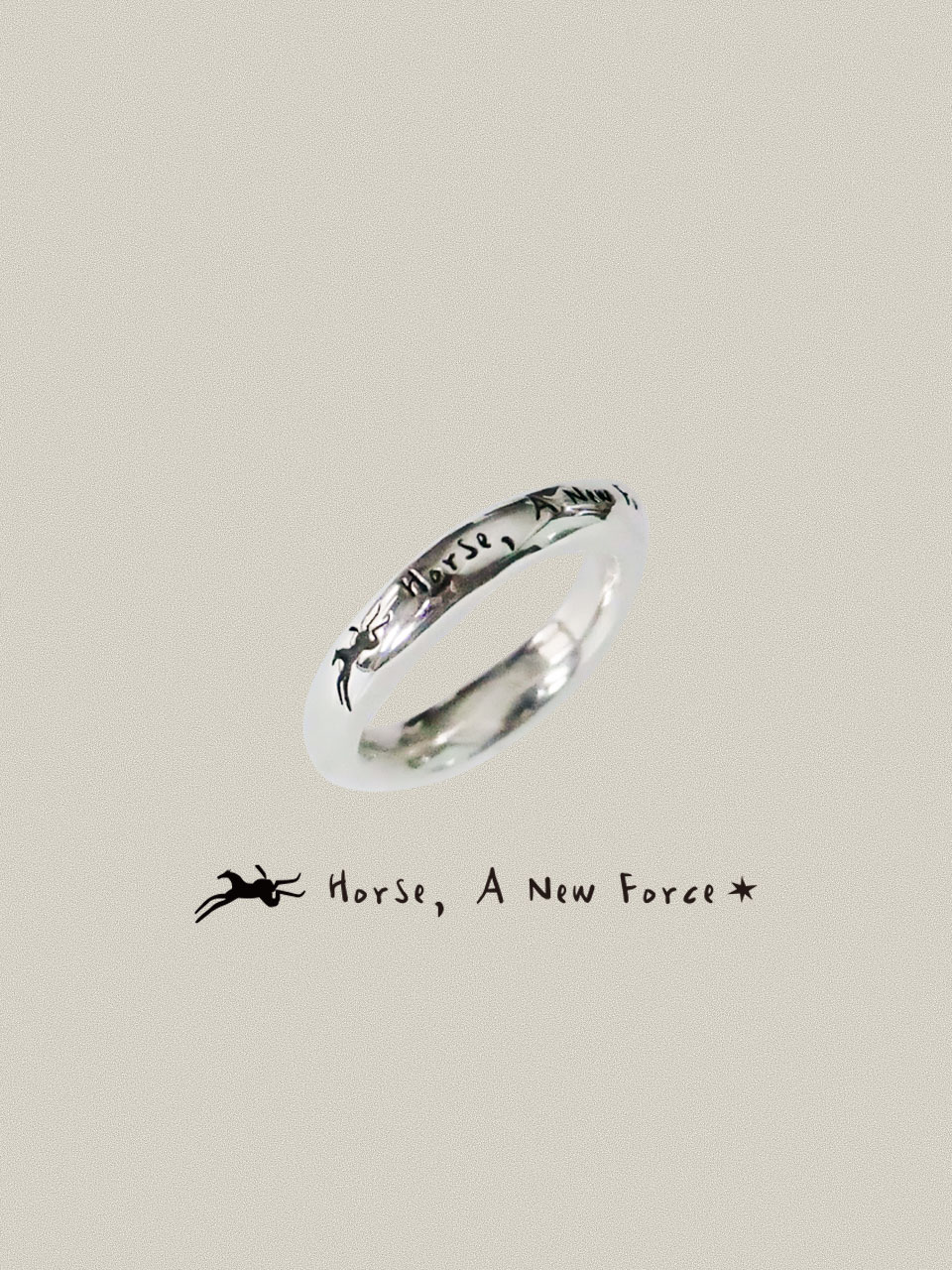 'Horse, A New Force'의 문구가 각인된 묵직한 무게감으로 제작된 이 은반지는,