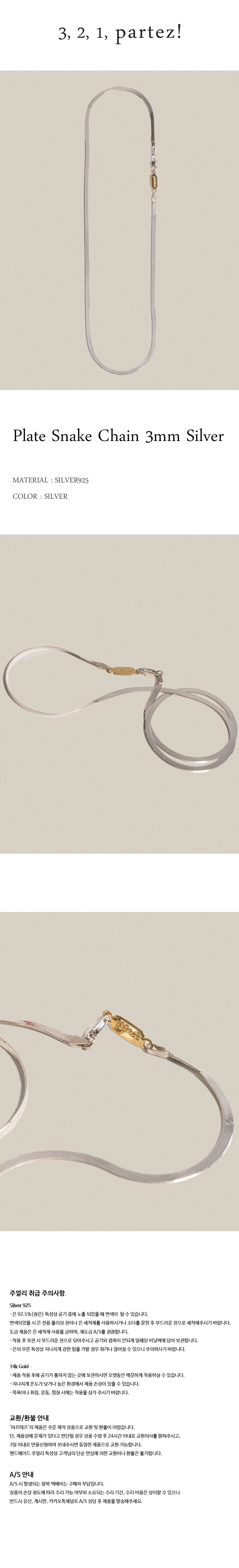70년대에 사랑받던 스네이크체인 목걸이는 클래식과 캐주얼 무드를 모두 가지고 있습니다. 3미리 너비의 짜임새 있는 스네이크 체인으로 캐주얼하거나 포멀하게 연출 할 수 있습니다. 잠금부분의 partez 플레이트 디테일은 체인과 대비되는 콤비컬러로 되어있어 고급스러운 포인트가 됩니다.